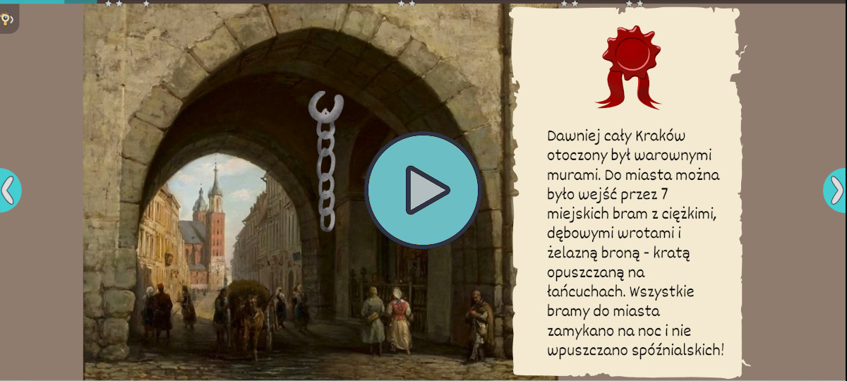 Czy wiecie, że dawniej cały Kraków był zamykany na noc?! Agata, 10 letnia przewodniczka pokaże Wam niezwykłe tajemnice i w przystępny sposób opowie swoim rówieśnikom o historii i zabytkach Krakowa. Podczas spaceru Drogą Królewską opowiemy sobie o murach, które dawniej otaczały miasto, zajrzymy do pracowni Jana Matejki, usłyszymy krakowski hejnał, wdrapiemy się na Wawel, by zobaczyć Szczerbiec i dzwon "Zygmunt" oraz poznamy krakowskie legendy.Prezentacja i karty pracy zdobyły główną nagrodę w konkursie Instytutu Dziedzictwa Narodowego na materiały dydaktyczne dla nauczycieli.