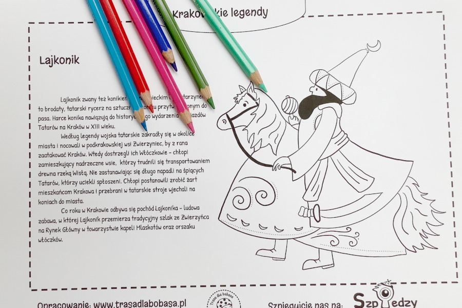 Najmłodszych zapewne zachwyci tajemniczy świat krakowskich legend i opowieści - o zaczarowanych gołębiach, lajkoniku oraz o dwóch braciach, którzy budowali wieże Kościoła Mariackiego. Kolorowanki krakowskie legendy do wydruku