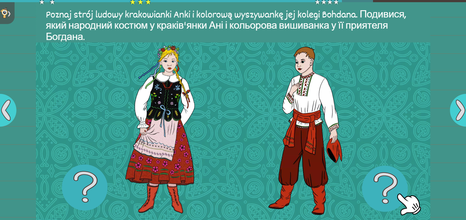 To aplikacja pełna zadań i zagadek zapoznających dzieci z Polską i Ukrainą: strojem ludowym, ulubionymi potrawami, zabytkami i stolicami naszych krajów. Link do aplikacji: Poznajmy się / Давайте познайомимось!