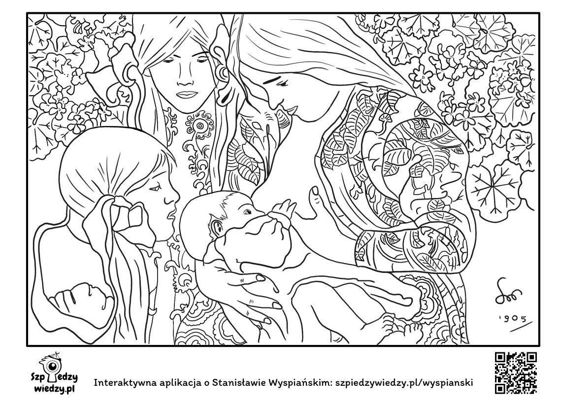 Stanisław Wyspiański - Macierzyństwo - kolorowanka pdf do wydruku